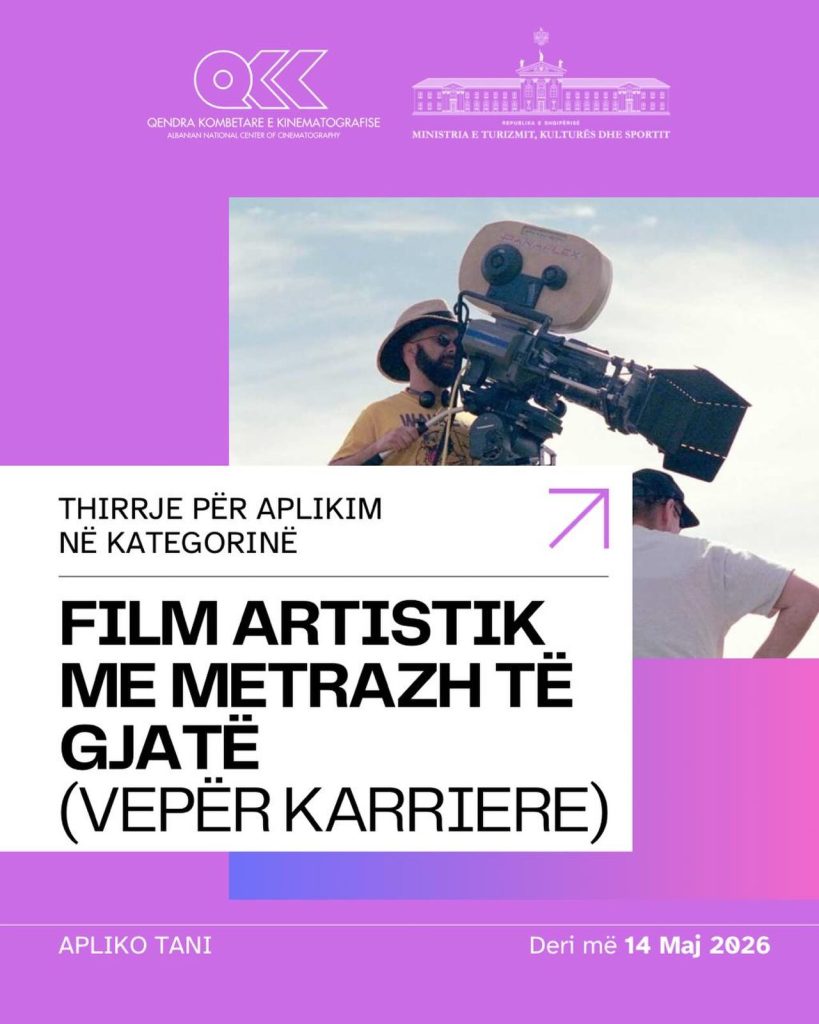 Qendra Kombëtare e Kinematografisë hap thirrjen për aplikime në kategorinë Film Artistik...